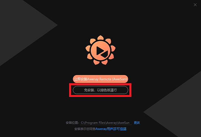 Step 4當您的電腦『從來沒有』執行過此程式時,將會跳出以下畫面,請選擇【免安裝,以綠色版運行】